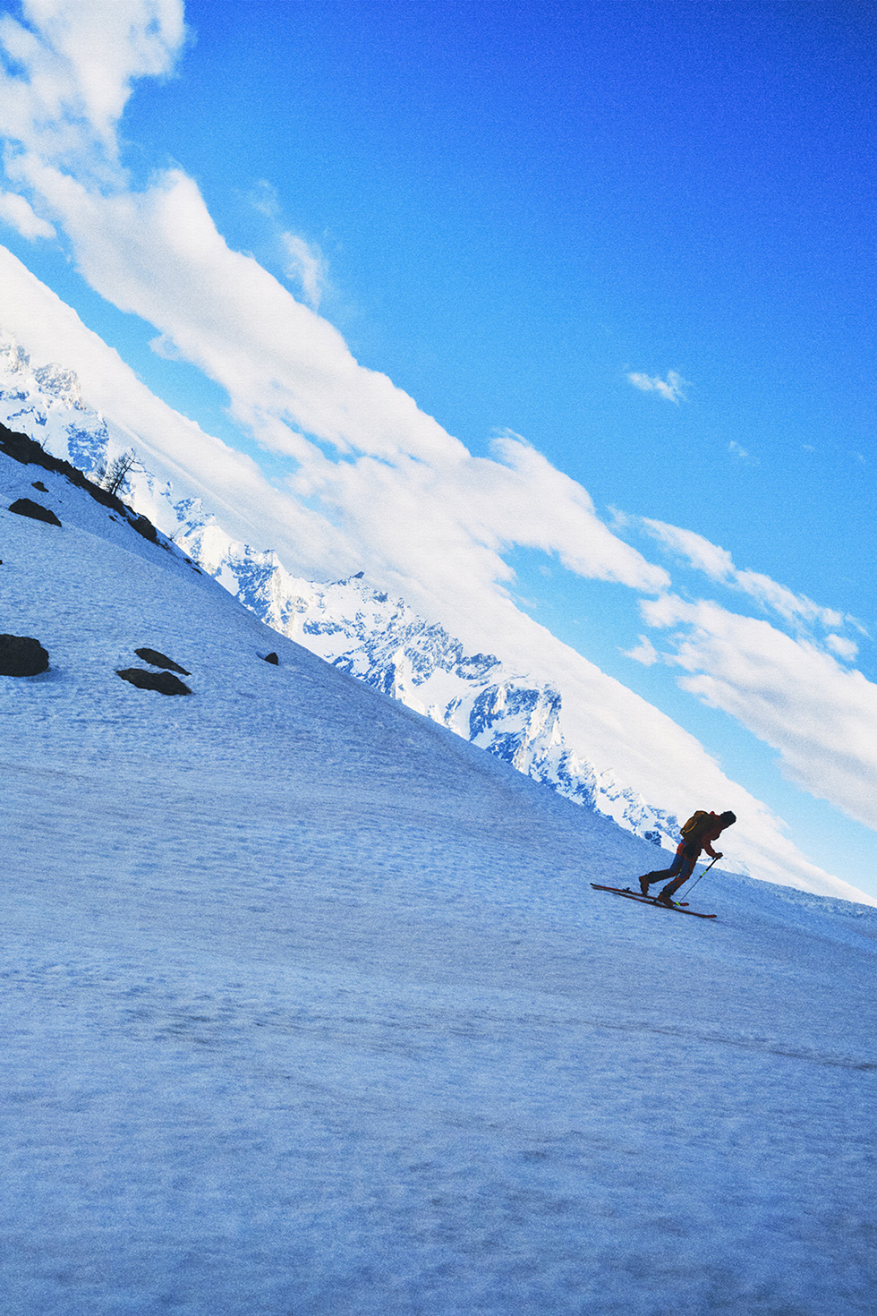 Oltre a descrivere le montagne dal punto di vista estetico, mi piace documentare e rappresentare (con il filtro del mio stile e del mio modo di vederle), le varie discipline alpinistiche. Ho sempre cercato di non limitarmi al loro aspetto sportivo e atletico, ma di catturare tutto ciò che le circonda. Quando mi viene assegnato un brief commerciale l’obiettivo è sempre quello di conciliare la mia estetica fotografica e la mia ricerca personale con le esigenze del cliente, attraverso un flusso creativo del tutto naturale.