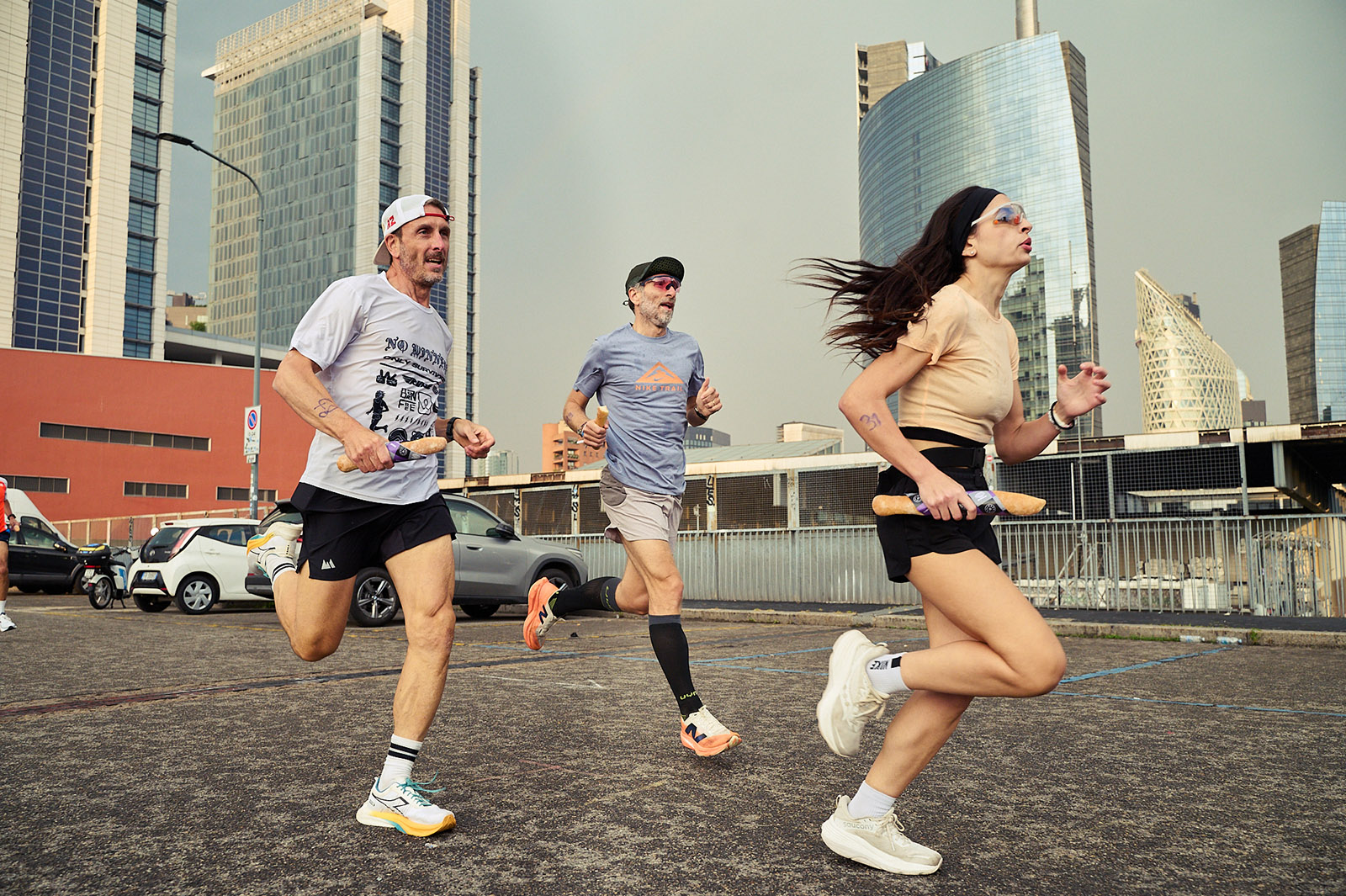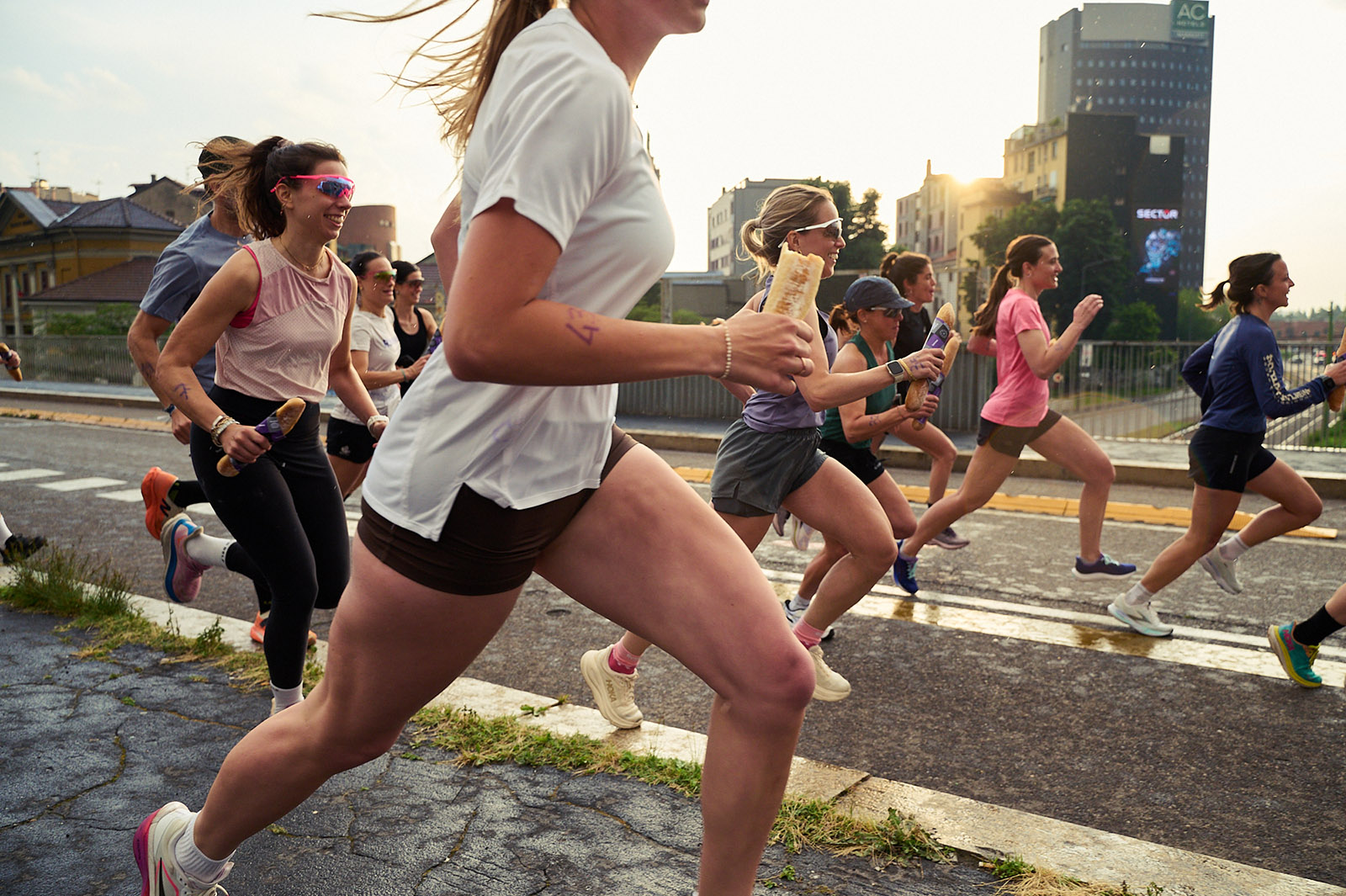 Good vibes, great gear, groovy tunes — our recent collaboration with Circle Sportswear, brought to life two simultaneous running events last week, the Pizza Relay Run and the Baguette Battle. The pavement felt the souls of 200 runners, charging in unison, from a running track in Paris, to a rooftop carpark in Milan. It was a celebration of the limited edition collection, sure, but the bigger takeaway for both brands was that “running is thriving and here to stay”. If we’re serious about supporting community, we too need to turn up and commit, rain or shine.